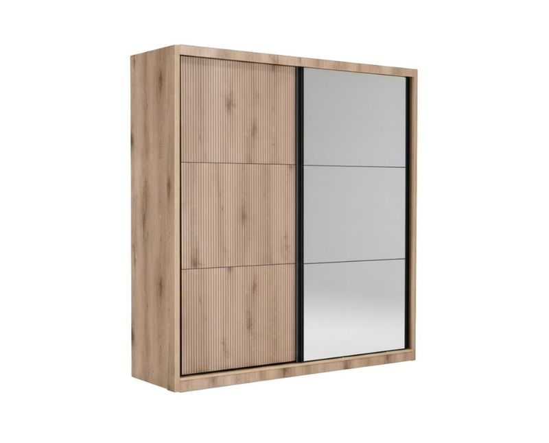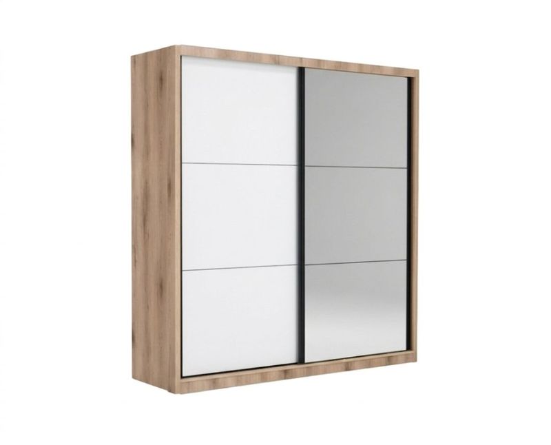 Širina (cm) :200 Visina (cm) :215 Materijal fronta :Iveral Materijal korpusa :Iveral Debljina univera :16 Boja remium hrast - Belo i kanela Broj polica :4 Vješalica :DA
