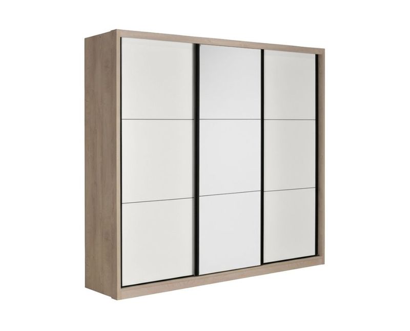 Širina (cm) :240 Visina (cm) :215 Materijal fronta :iveral Materijal korpusa :Iveral Debljina iverala :16 Boja:Premium hrast - Bijelo... i kanela Broj polica :9 Vješalica :DA