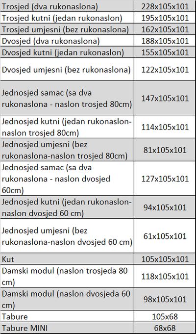 - dimenizija sa slike 300x260cm trosjed 195cm+kut 105cm+ dvosjed sa rukonaslonom155cm...info cijena B.kat gotovina 1799,00 eur
