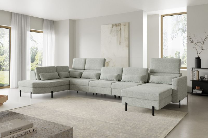 "PIENZA - Kutna sofa s funkcijom spavanja i kosim otomanom s naslonom, 3+2+6